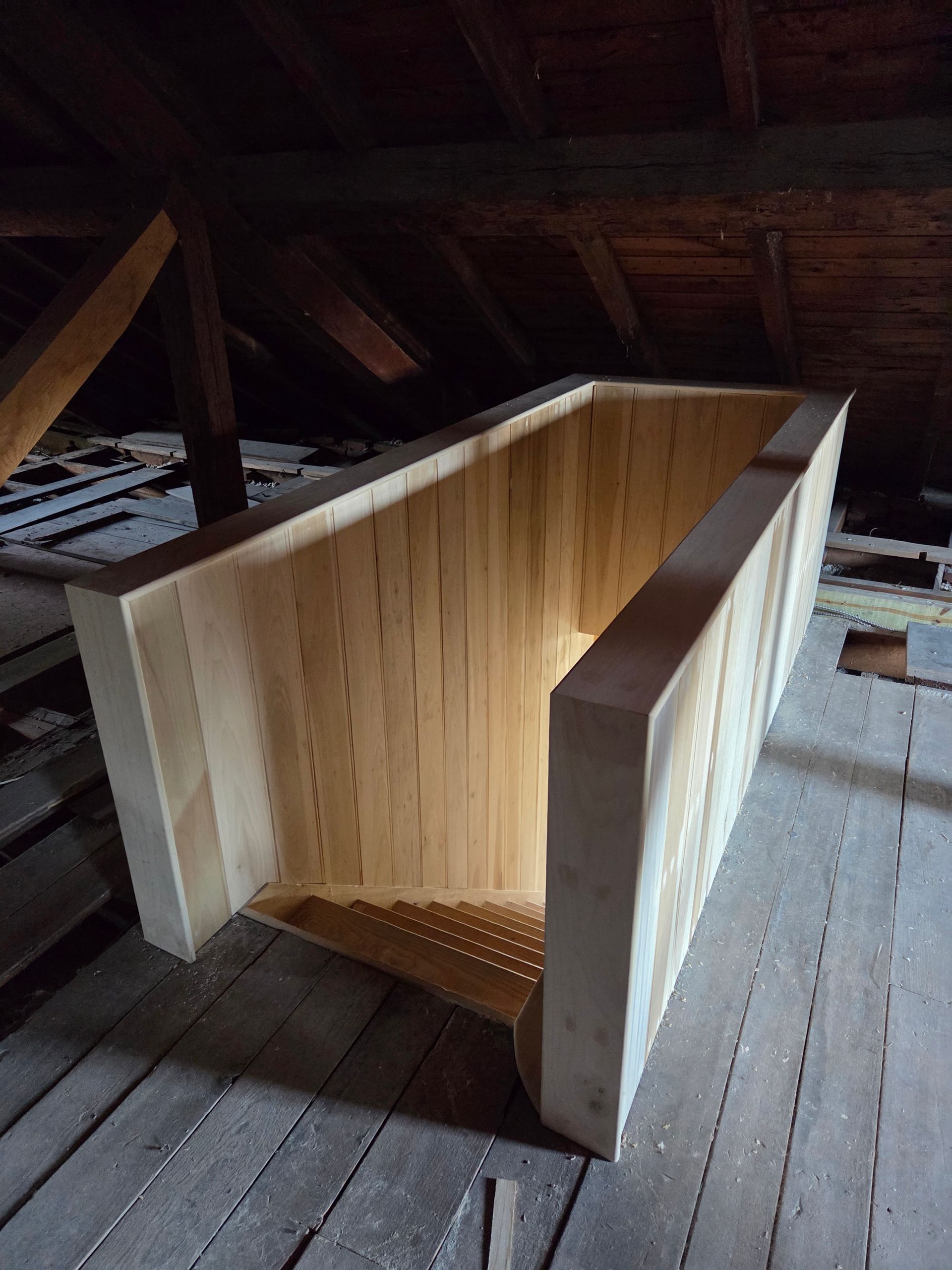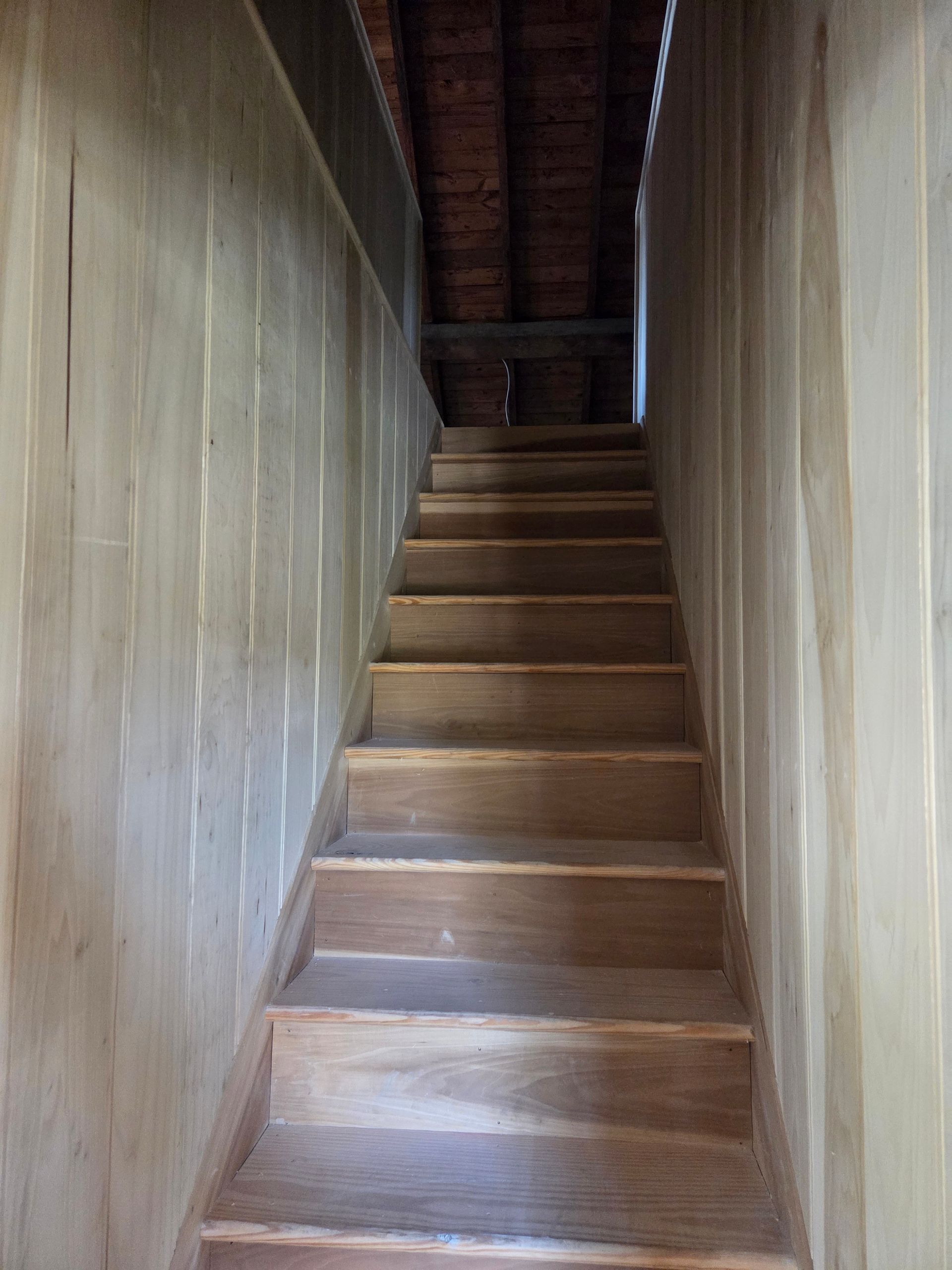 Restoration on the 1827 meeting House began in the summer of 2024. It will continue into 2025. It includes the installation of the missing wall on the second floor, the replacement of the attic stairs to the original location and the installation of an electrical system.